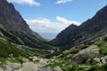 hrot und des Pysny stit, hat eine Höhe von etwa 200m. Fast direkt an ihrer oberen Kante thront die Teryho chata, die höchstgelegene ganzjährig betriebene Berghütte der Hohen Tatra. Der leichteste