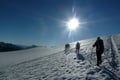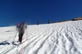 Tag 3: Von der Hütte steigt man wenige Meter zum Gletscher ab. Die meist gut eingetretene Trasse führt anfangs moderat ansteigend, dann flach in östliche Richtung über den Gletscher. Dabei peilt man die von der Hütte aus gut sichtbaren Felsen mit dem Kreuz an. Nach gut 20 Minuten hat man den panoramareichen Ort mit den Kriegsresten aus dem I Weltkrieg erreicht. Anschließend geht es westlich haltend, in einem Rechtsbogen über den Langenferner zum Eisseepass, die breite Einsattelung zwischen Eisseespitze und Suldenspitze, wo sich auch die Reste der zerstörten Halleschen Hütte befinden. Etwas nördlich davon erhebt sich die Eisseespitze, unser nächstes Gipfelziel. Man verfolgt entweder den Steig direkt vom Eisseepass über Blockwerk entlang des Rückens zum schneebedeckten Gratverlauf, oder etwas mehr rechtshaltend über ein steiler ansteigendes Firnfeld. Letztendlich folgt man dem Grat begleitenden Schneehang problemlos direkt zum aussichtsreichen Gipfel. Von der Eisseespitze führt unsere Route wiederum zurück zum Eisseepass. Von der Einsattelung stiegt man nun in vielen schottrigen Kehren und leichten, kurzen Kletterpassagen (I) über kombiniertes Gelände zum Suldenferner ab. Schlussendlich folgt man den Anstiegsspuren hinunter zur Schaubachhütte und weiter zur Talstation Suldenbahn, unserem Ausgangspunkt.