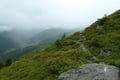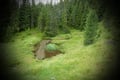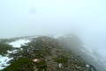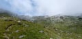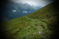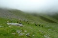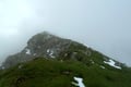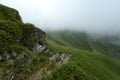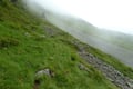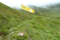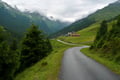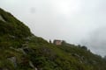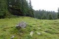 auf einer grünen Hochfläche knapp unterhalb des Gipfels. Auffällig wurde die Freihut von Zeit zu Zeit mit ihrer riesigen Schutthalde, von der immer wieder Steine bis auf die Straße