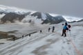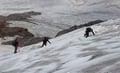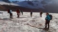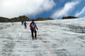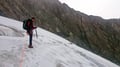 2. Tag: Von der Vernagthütte steigt man in wenigen Minuten auf die Seitenmoräne des Vernagtferners und folgt dieser weiter aufwärts bis zu ihrem Ende, an welchem man ca. auf 2900m Seehöhe den Gletscher betritt. Auf flachem Eis steigt man nun in leicht westlicher Richtung bis zu den vom Gletscher abgeschliffenen Felsen auf, wo auch eine Klimastation steht. Man umgeht diese und quert daraufhin etwas oberhalb die Felsrippe nordwestlich zum etwas steiler herunterziehenden Gletscher hinüber. Nach gut 100 Höhenmetern wird der Gletscher wieder zusehends flacher (Vorsicht Spalten!) und führt in nördlicher Richtung bis zum Fuß des gerölligen Gipfelrats. Man steigt etwa 30 Höhenmeter zum Grat höher, folgt diesem in östlicher Richtung bis zu einer Einsattelung und ersteigt die Hochvernagtspitze über einen kurzen Ab- und Aufstieg. Abstieg wie Anstieg zur Vernagthütte und zum Ausgangspunkt.