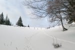 Vorerst weiter durch ein kurzes Waldstück und dann gleich wieder über Wiesen, zog sich der Wegverlauf zum sogenannten Sulzboden unterhalb des Gipfels hinauf. Schon jetzt hatten wir jede Menge Spaß und genossen nebenbei auch die von der weißen Pracht bedeckte Natur.