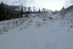 Über freie Wiesenhänge und Waldschneisen ging es, entlang der Schitourenroute, gemächlich zu einem alten Holzstadl höher, bei dem wir uns links hielten und weiter der vorhandenen empor Schispur folgten.