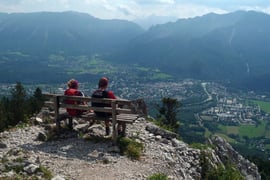 Auf der Aussichtskanzel herrschte bereits reges Treiben. Angela, Babsi & ich schlossen uns den Gleichgesinnten an und genossen unser mitgebrachtes Lunchpaket bei beeindruckender Fernsicht. Zu guter Letzt durfte selbstverständlich der Einkehrschwung im Reichenhaller Haus nicht fehlen. PROST!