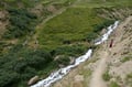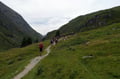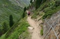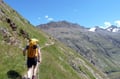 Von Vent folgt man anfangs der ausgeschilderten Asphaltstraße zu den Rofenhöfen, dann weiter entlang des markierten Güterwegs Nr.: 902 durch Wiesengelände immer leicht ansteigend nach Westen zur Materialseilbahn der Vernagthütte. Hier endet der Fahrweg und geht in einen breiten, gut ausgebauten Wanderweg über. Diesem folgt man, teils mit Drahtseilen versichert entlang steiler Hänge durch das am Beginn schmale Tal hoch über der Rofenache taleinwärts. Letztendlich dreht der Wegverlauf nach Südwesten ab, quert den Vernagtbach auf einer Holzbrücke und wandert oberhalb der Rofenalm vorbei zum bereits sichtbaren Hochjoch Hospiz hinauf. Von der Hütte folgt man der Beschilderung "Mittlere Guslarspitze - Doloretteweg" schräg nach Nordwesten über Wiesengelände aufwärts, hält sich bei der ersten Weggabelung links und wandert den Doloretteweg weiter entlang (rechts führt der Bergweg rund um die Guslarspitze zur Vernagthütte).