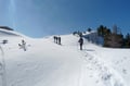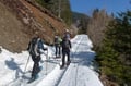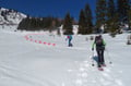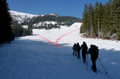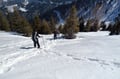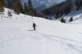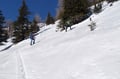 Vom Parkplatz geht es anfangs südwestlich über die Wiese und weiter auf der meistens gut gespurten Forststraße links des Ardlingbaches in den Graben talein. Nach etwa 1,5 km dreht die Forststraße nach N ab. Dabei quert man den Ardlingbach über eine Brücke und folgt der moderat ansteigenden Forststraße nordwärts weiter. Kurz darauf mündet die von rechts heraufziehende Alternativroute (Nr. 6) ein, welche am Anfang des Waldrandes gleich über eine Brücke auf das rechte Ufer des Ardlingbaches leitet und daraufhin eine Art Hohlweg durch Baumbestand zur Einmündung emporführt. Von der Einmündung verfolgt man noch ein kurzes Stück die besagte Forststraße bis der Routenverlauf links durch ein Waldstück auf eine große Lichtung unterhalb des Hasensattel leitet. Nun bieten sich wiederum zwei Möglichkeiten an. Entweder man stapft hier geradeaus weiter in südwestliche Richtung über die Lichtung und zieht dann in einem Rechtsbogen zu einer Forststraße empor. Oder man dreht auf der großen Lichtung gleich nach rechts ab und steigt zum Hasensattel höher. Ab hier folgt man dem bewaldeten Rücken bis zum Aufeinandertreffen mit einer Forststraße hinauf. Dieser stapft man daraufhin beinahe entlang der Höhenschichtlinie Richtung Südwesten, wo sich beide Routen unterhalb des Steilaufschwunges der Kreuzkarschneid vereinen. Jetzt heißt es nochmals alle Kräfte mobilisieren! In vielen Serpentinen überwindet man diesen zwischen 35° und 40° steilen Aufschwung zur Kreuzkarschneid, wo für viele Skitourengeher meistens die Tour endet, denn der kupierte Gipfelgrat ist für viele skitouren-technisch uninteressant. Für Gipfelsammler geht die Tour selbstverständlich immer entlang des meistens überwechteten Nordkammes weiter zum Gipfel des Kreuzkogels. Abstieg wie Anstieg.