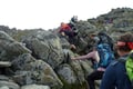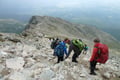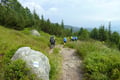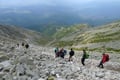 Der 4. Tag galt einzig und allein dem Wahrzeichen der Slowakei, dem Krivan (2494m). Zuerst stiegen wir früh morgens vom Berghotel Popradske pleso über den rot markierten Wanderweg etwa 4,5 k und 250 Höhenmeter nach Strbske Pleso ab und bezogen im Hotel Crocus, welches wir am Vorabend gebucht hatten, Quartier. Anschließend brachte uns ein Taxibus nach Tri Studnicky zum Ausgangspunkt unserer Krivan-Überschreitung.