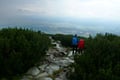 Charakter: Lange und anstrengende Gipfeltour auf das slowakische Wahrzeichen. Stark frequentiert! Einige steile Felspassagen unterhalb des Gipfels verlangen Trittsicherheit und etwas Klettergeschick. Die Besteigung ist nur bei sicheren Verhältnissen zu empfehlen.