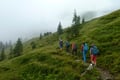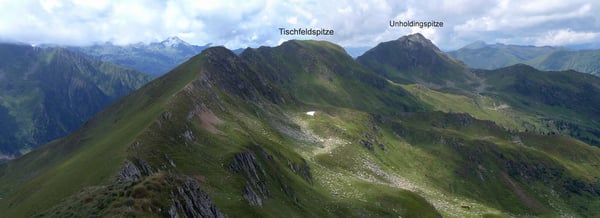 Charakter: Aussichtsreiche, aber lange Kammwanderung auf unmarkierten Pfaden. Die Tischfeldspitze ist der am weitesten nach Norden vorgeschobene Gipfel des Gipfelquartetts um die Mahdfeldalm und bis zum Vorgipfel eine einfache Wanderung über großteils weglose Wiesenhänge. Der Gratübergang zur Tischfeldspitze erfordert etwas