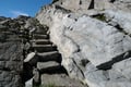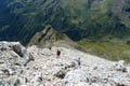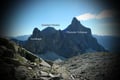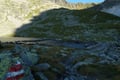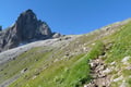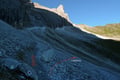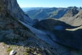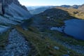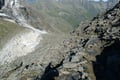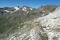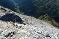 Der „Tiroler Höhenweg“ zieht noch wenige Meter flach durch die Südflanke weiter, bevor er anschließend über eine kurze versicherte Passage abwärts in die „Schafflecke“, ein weites Schuttkar führt, von welchem es entlang des schönen Wanderwegs westwärts weiter zum mystischen Rocholsee und zur malerisch gelegenen Magdeburger Hütte geht.
